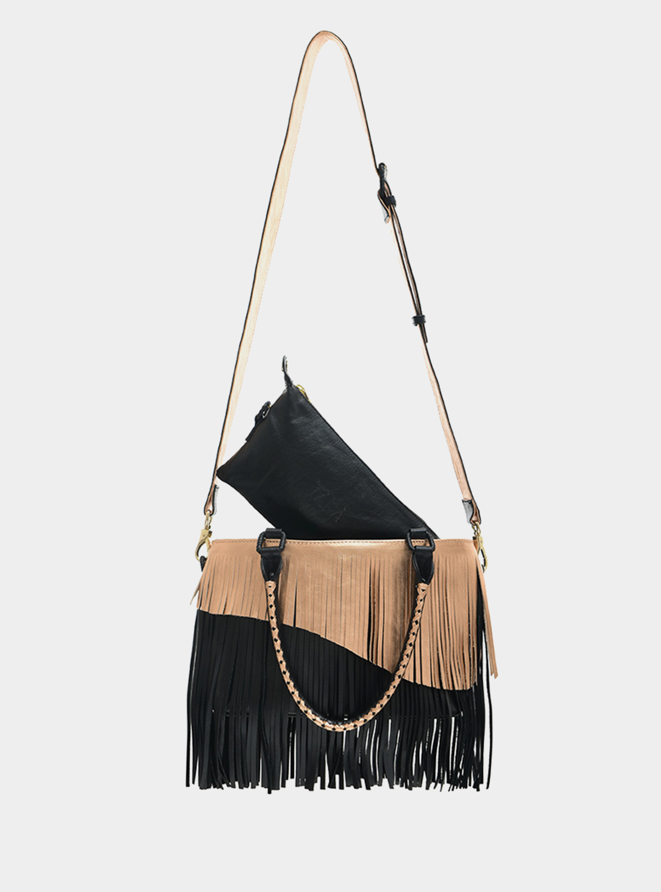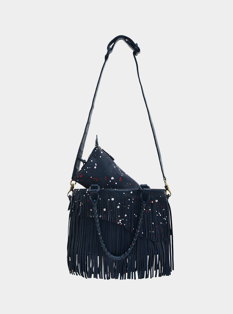 Loving this tote is anything but a battlefield because the versatility of The TALA Battlefield means you can keep every option open. A discreet front flap allows you to securely stow and access your frequently used valuables. The interior of another opens to reveal a removable, totally tote-able pouch that can be handheld or cross-bodied. The handles allow the bag to be carried by hand, tossed over the shoulder, or convert it to a crossbody with the included strap. Finally, the two-tone, dual-level fringe is guaranteed to have you turning heads wherever you go. Big enough for life’s every necessity but chic enough for date night, the Battlefield means your fashion battle has already been won.