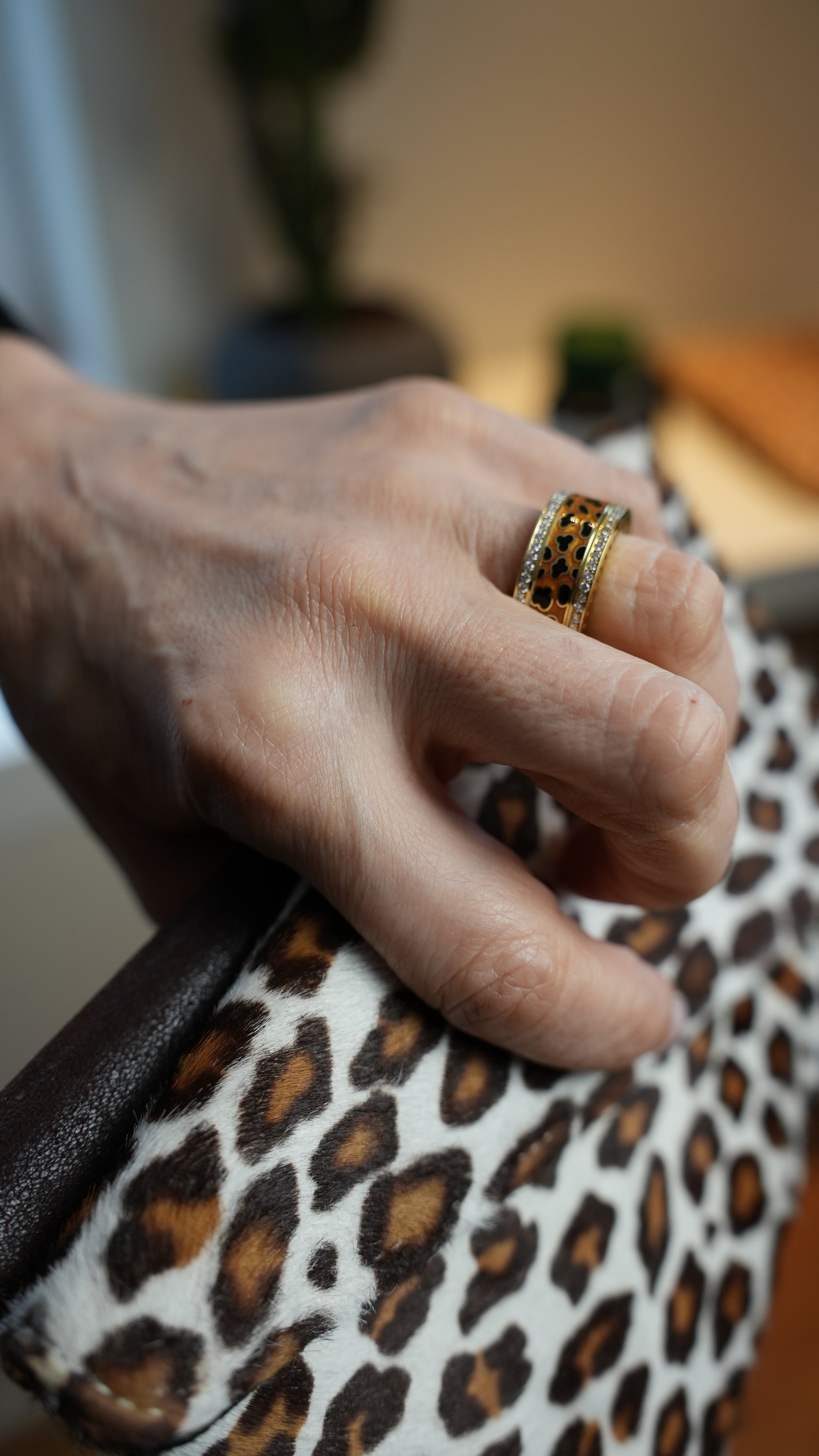 A bold, big-cat print band framed with a shimmer of stones that turns your everyday tracker into a statement piece. Designed to sit entirely outside your ring’s sensors, it keeps your data flowing with zero interference and zero compromise, while the wide, luxe profile brings maximum impact to every gesture. Snap it on when you want to roar, swap it out when the mood changes, because syncing with your body should never mean dialing down your style.