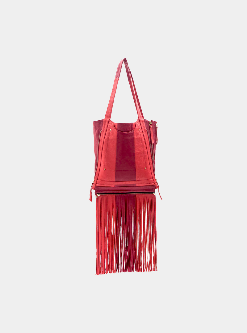 Stash your trainers, your makeup, and a quick-change of clothes, and then rock ‘n’ roll your way from yoga to work meeting to drinks without missing a beat. The TALA Jettaway is light on the shoulder, serious on style, and brimming with built-in bonuses: It’s equipped with front and back grab-and-go outer pockets for easy access to your most important stuff. The extra-long fringe at the base of the tote can be removed or swapped for another colour to give your bag added edge (extra leather fringe sold separately). The included crossbody strap makes hands-free jet-setting a cinch. Unzip the sides and the bag transforms from a triangular satchel (closed) into a rectangular stunner (open) to create more space for all your sundries and give your TALA Jettaway a totally different look.