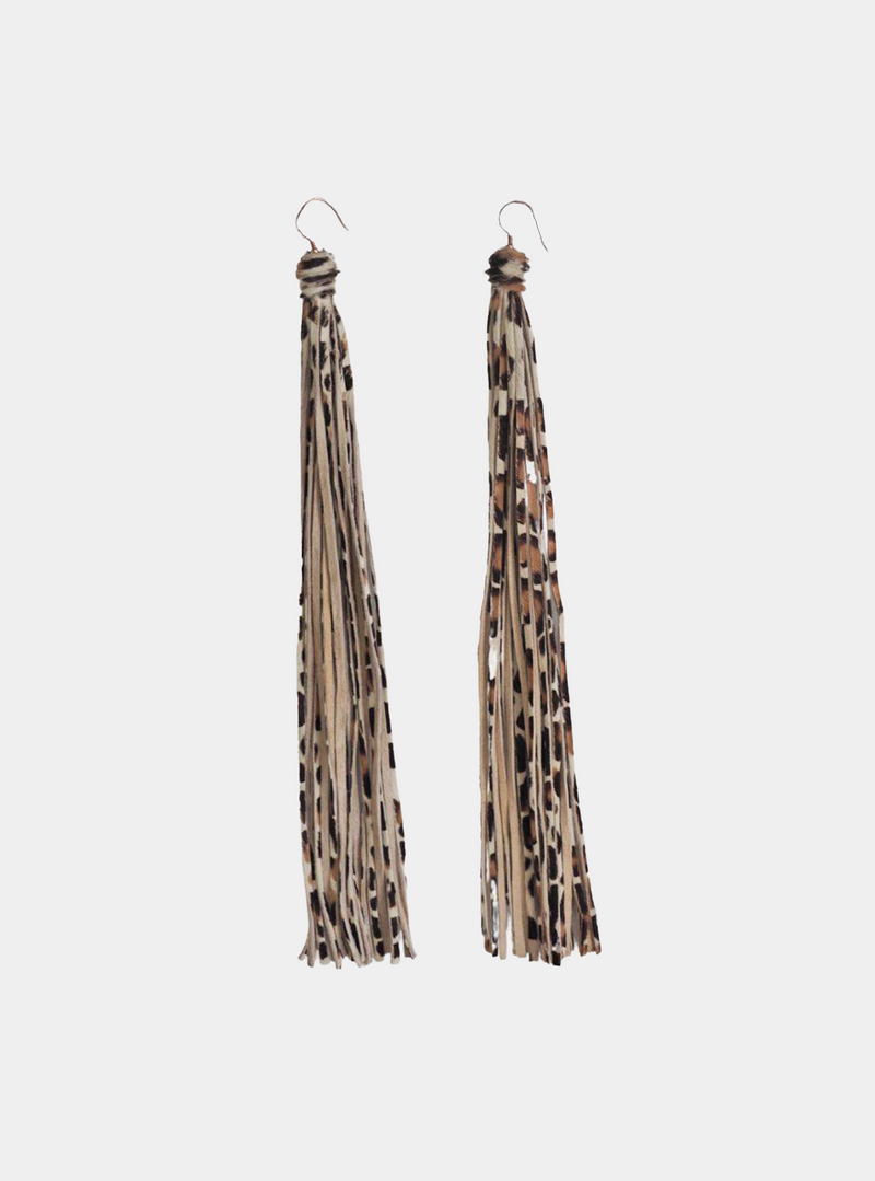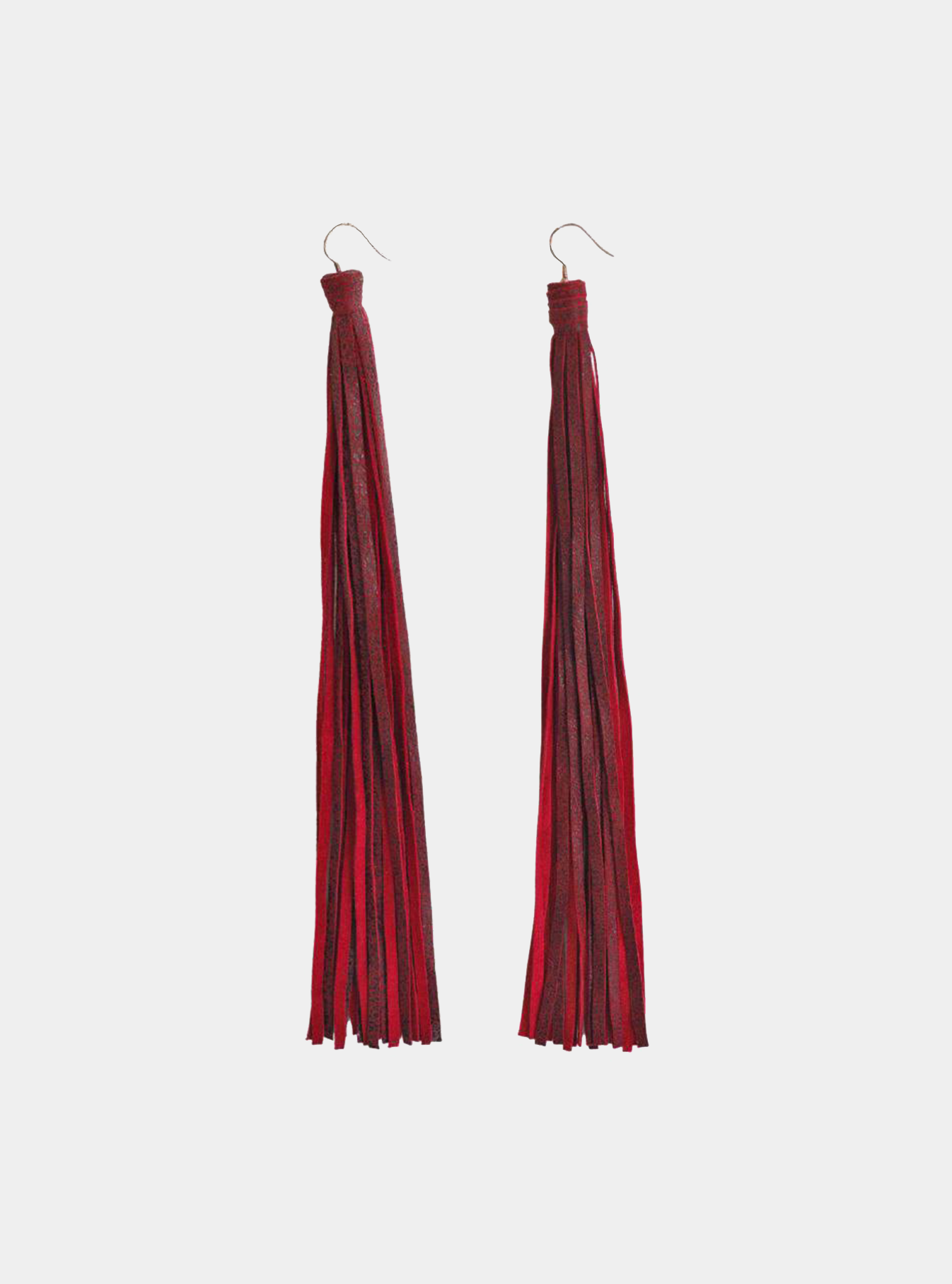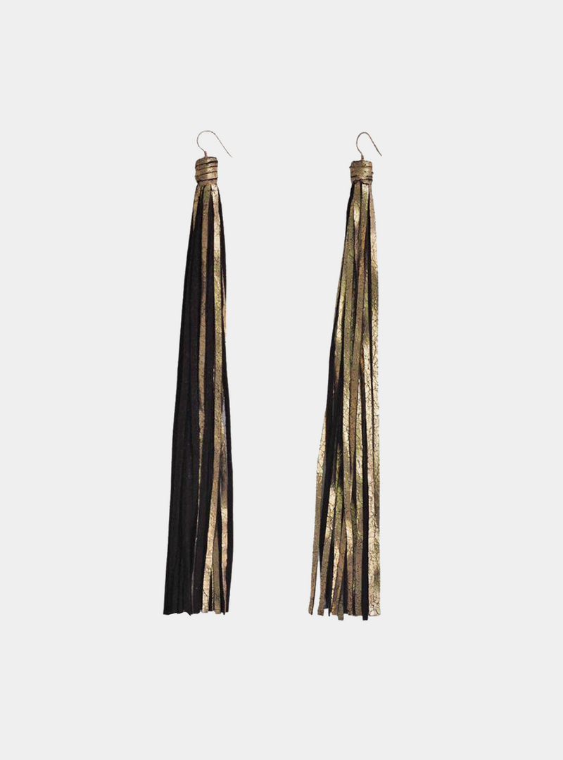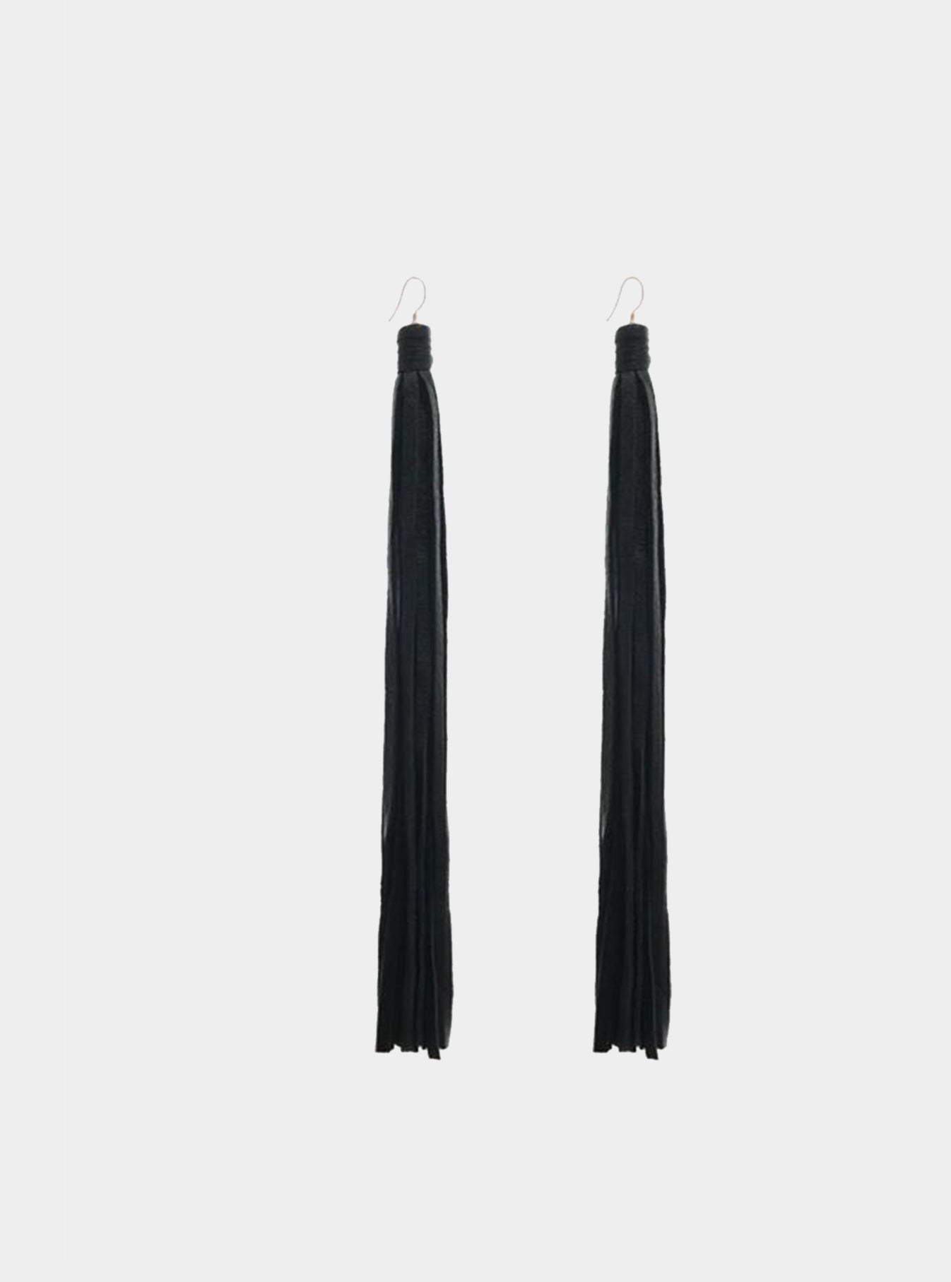 Double down on the fringe and the funk with the chromatic, long leather ROCK ‘N FRINGE EARRINGS.