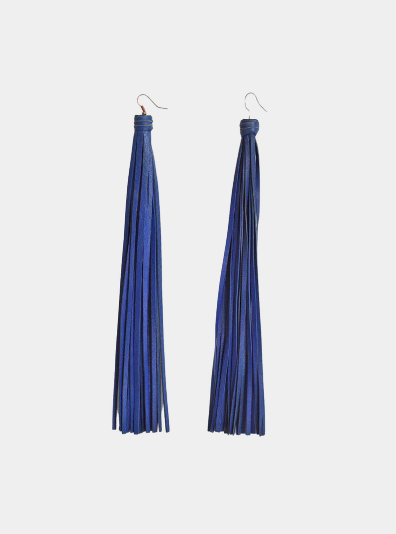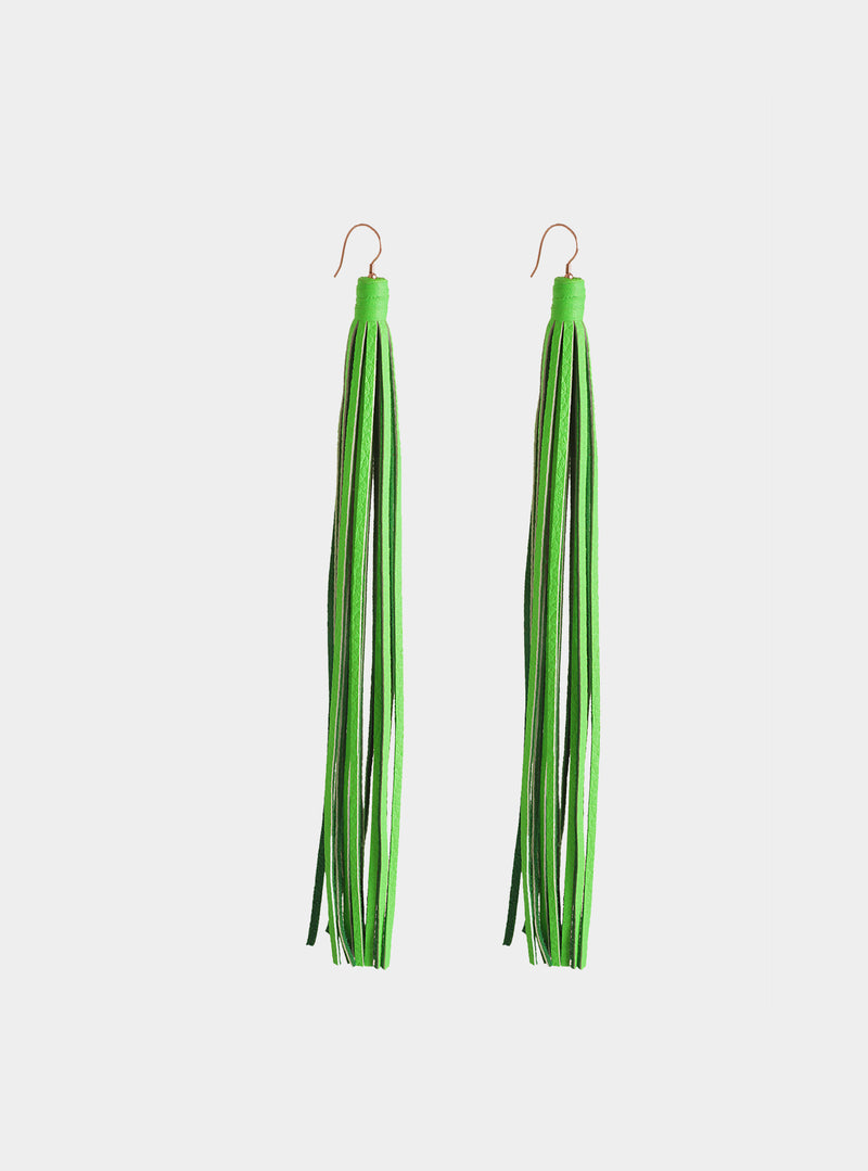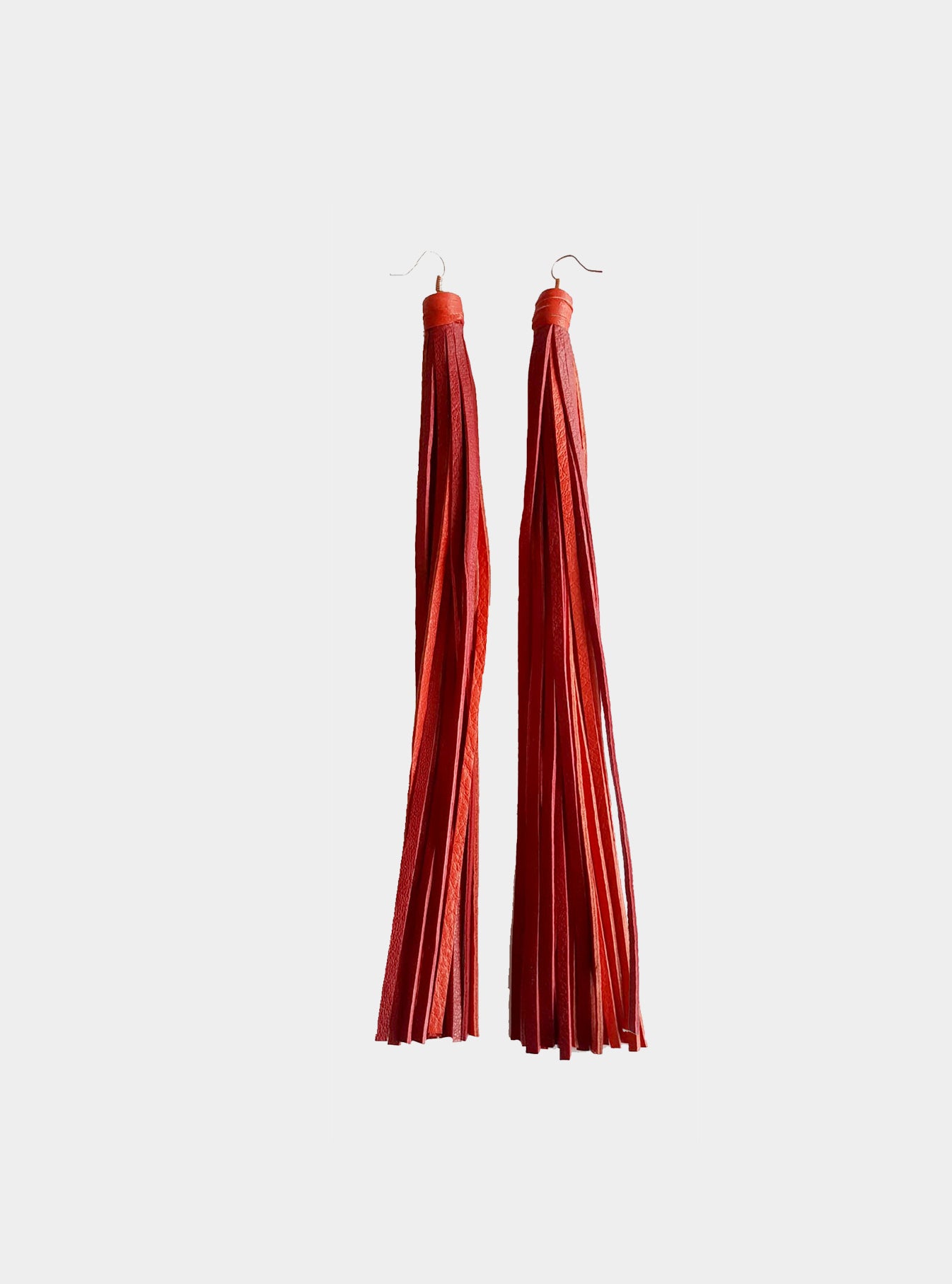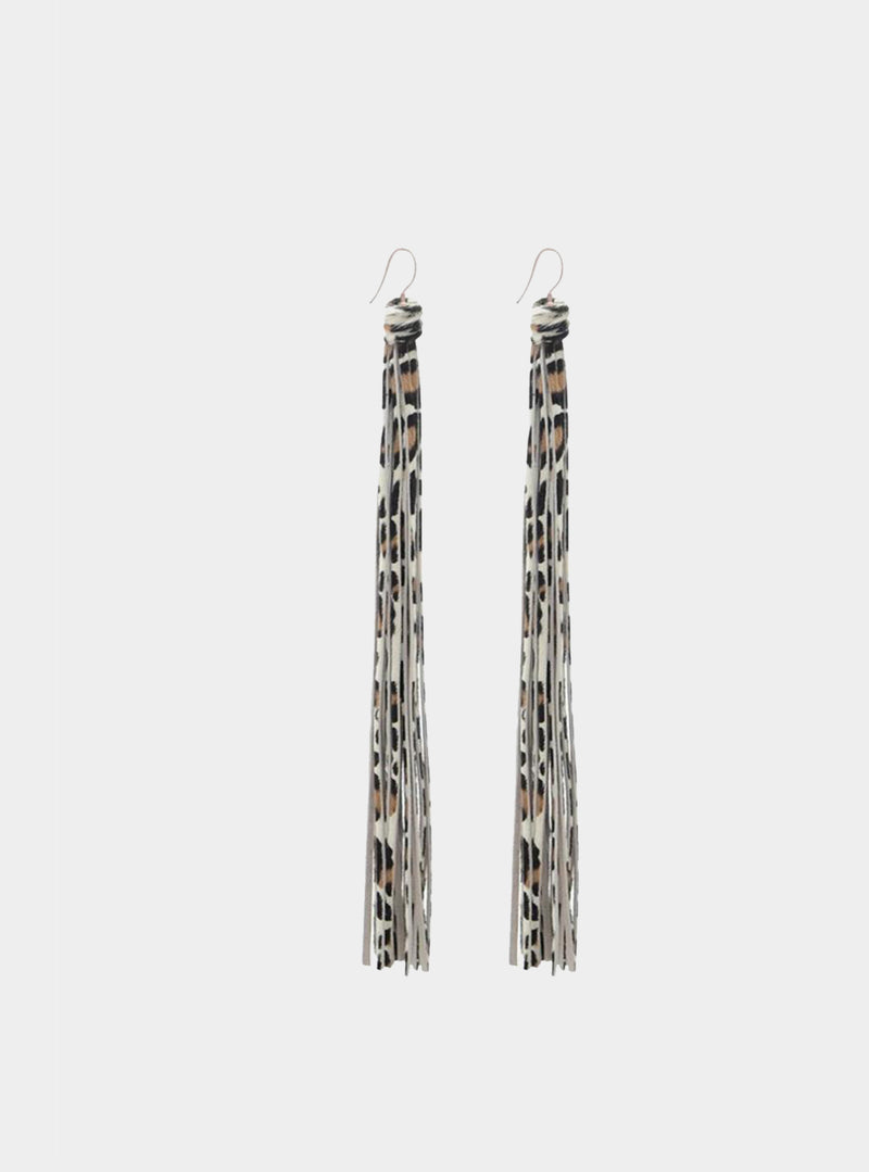 Double down on the fringe and the funk with the chromatic, long leather ROCK ‘N FRINGE EARRINGS.