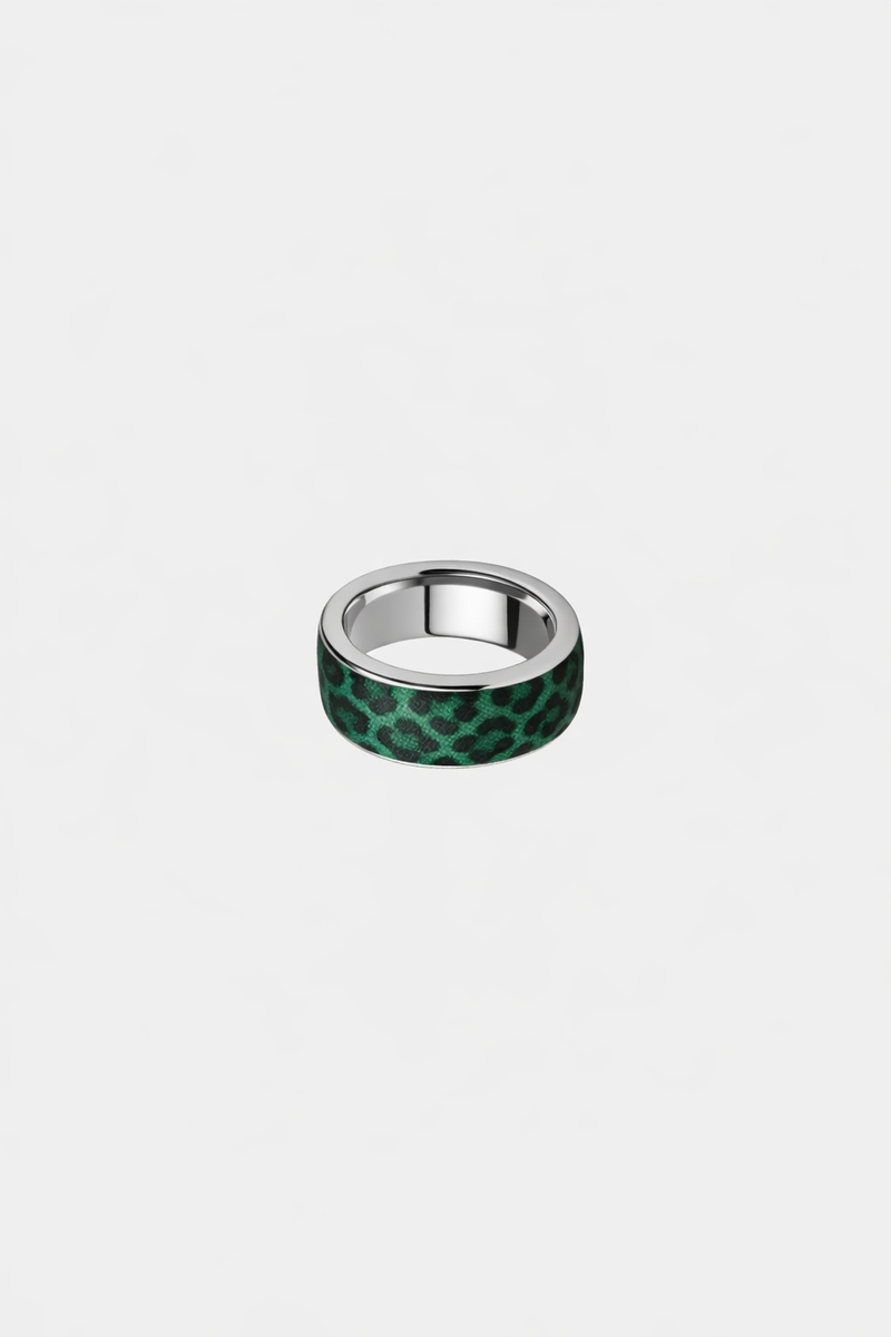 A lush green leopard-print sleeve wrapped in high-shine gold that takes your ring from every day to electric in one snap. Designed to sit completely outside your ring’s sensors, it keeps your tracking sharp with zero interference and zero compromise, while the sleek, glossy finish brings a hit of untamed glamour to every move. Wear it when you’re feeling bold, swap it when the mood shifts, because syncing with your body should never mean toning down your edge.