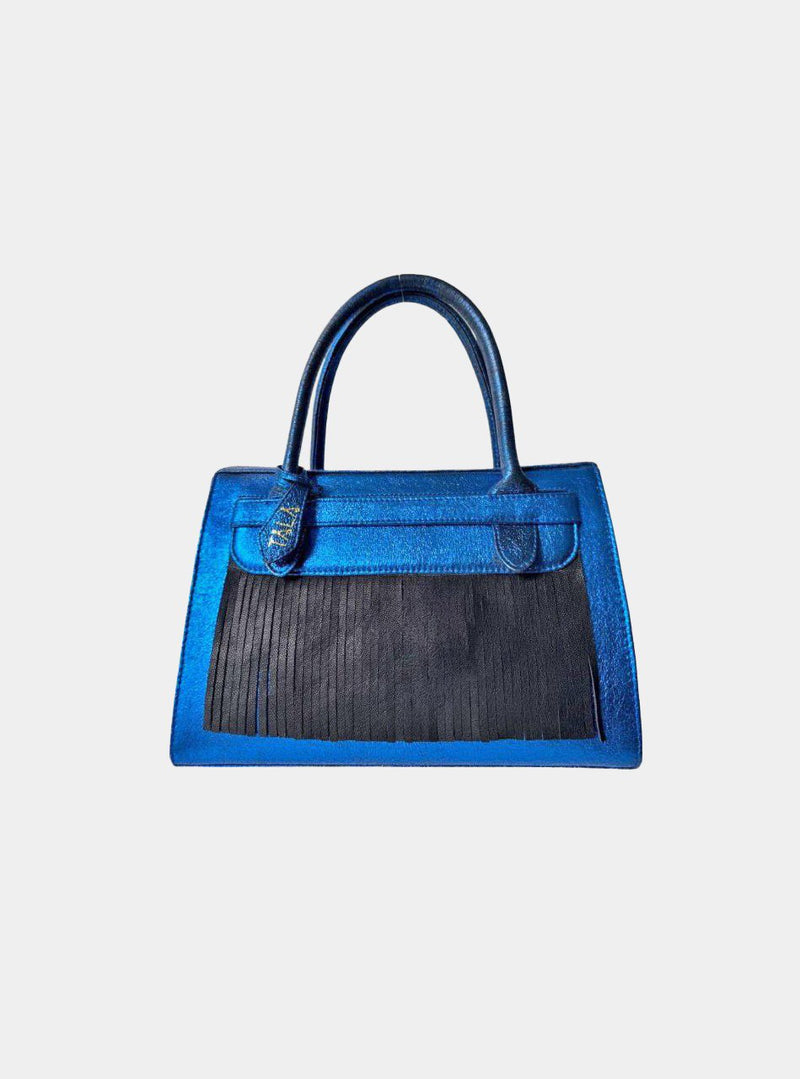 Bold, unapologetic, and full of character. The Fringetini is a statement in movement. With its structured body softened by a cascade of playful fringe, this handbag blends power and rhythm in every stitch. Dual handles and a clean silhouette keep it grounded in elegance, while standout details bring the attitude. Designed for those who lead with presence and style.