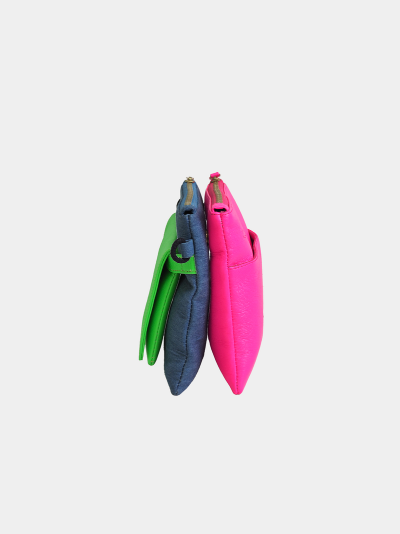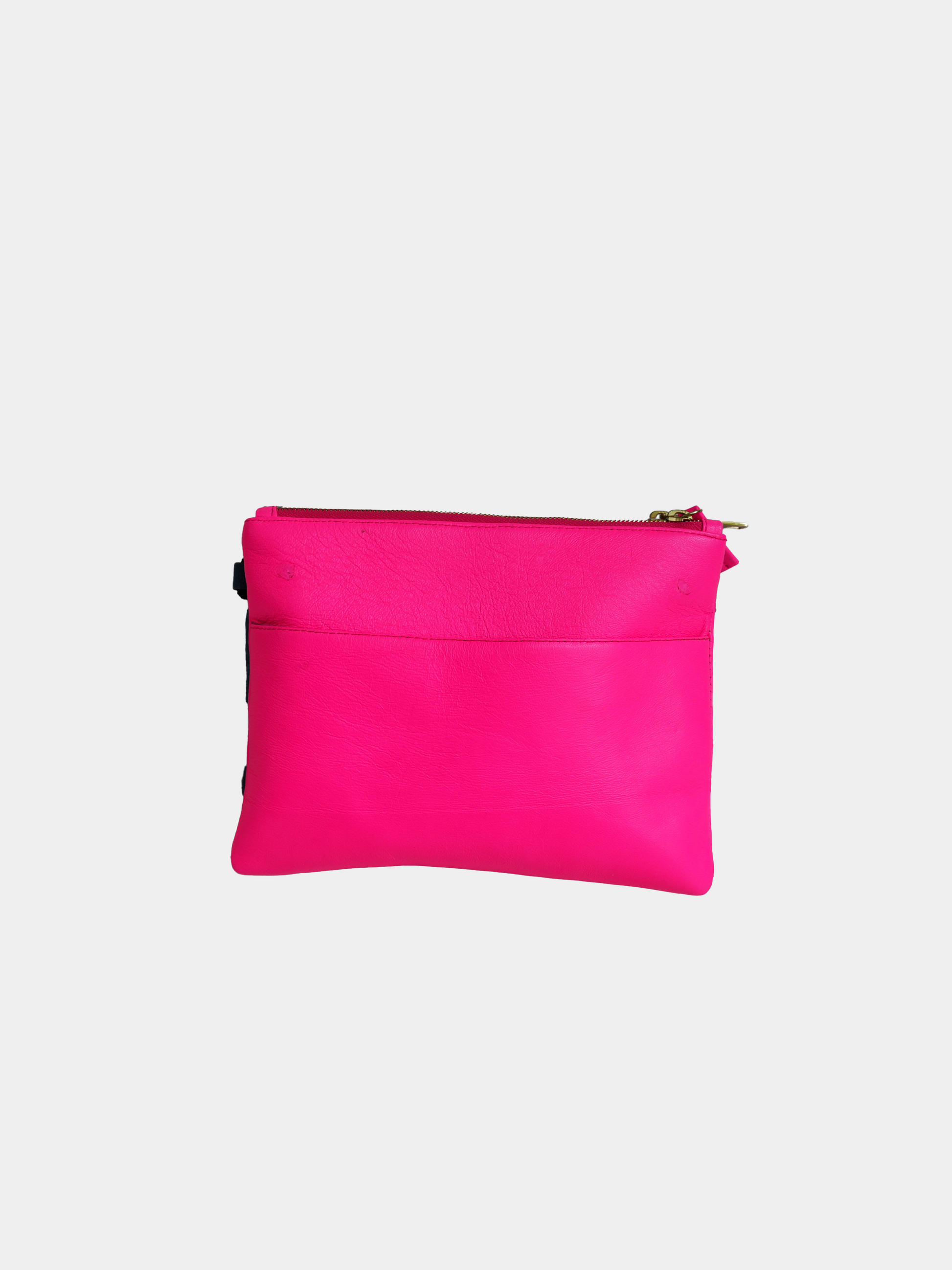 The Mia is a minimum seven bags in one! Three pouches that can be worn individually or together, choose to wear one two or three at a time. The Mia continues to make versatility the name of the game wear it as a clutch, belt bag or cross body; perfect to take all through your day and into the night.