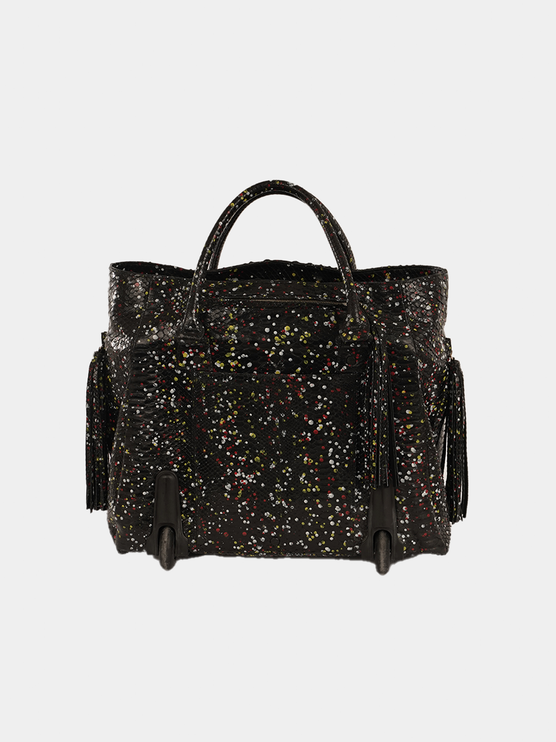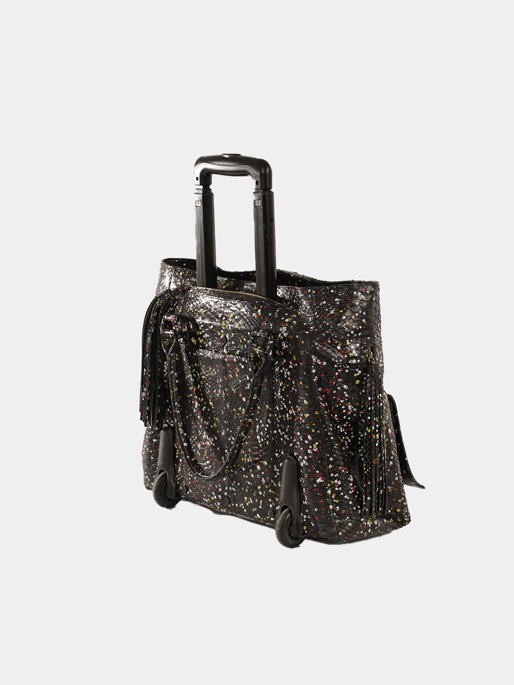 Your Ultimate Companion for Every Occasion Whether you're jet-setting across the globe or heading out for a casual day, The Pretender adapts effortlessly to your every need. This multifunctional wonder offers an abundance of pockets to keep all your essentials organised and within reach. Its chic design conceals a versatile shoulder strap, allowing you to carry it over the shoulder for hands-free convenience. When the journey demands more mobility, simply extend the hidden wheels and handle for easy transport, transforming your stylish tote into a rolling companion. With its perfect blend of form and function, The Pretender is more than just a bag, it's an extension of your lifestyle.