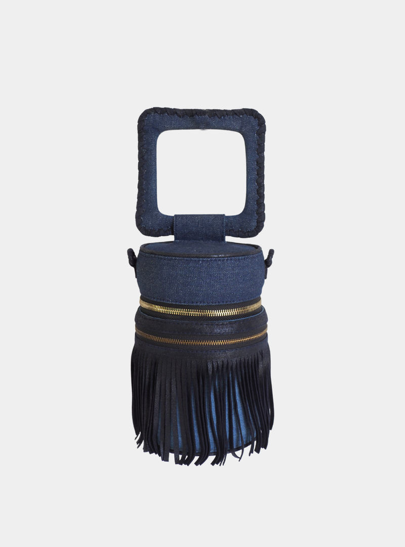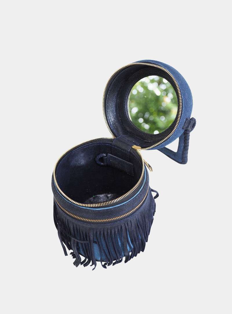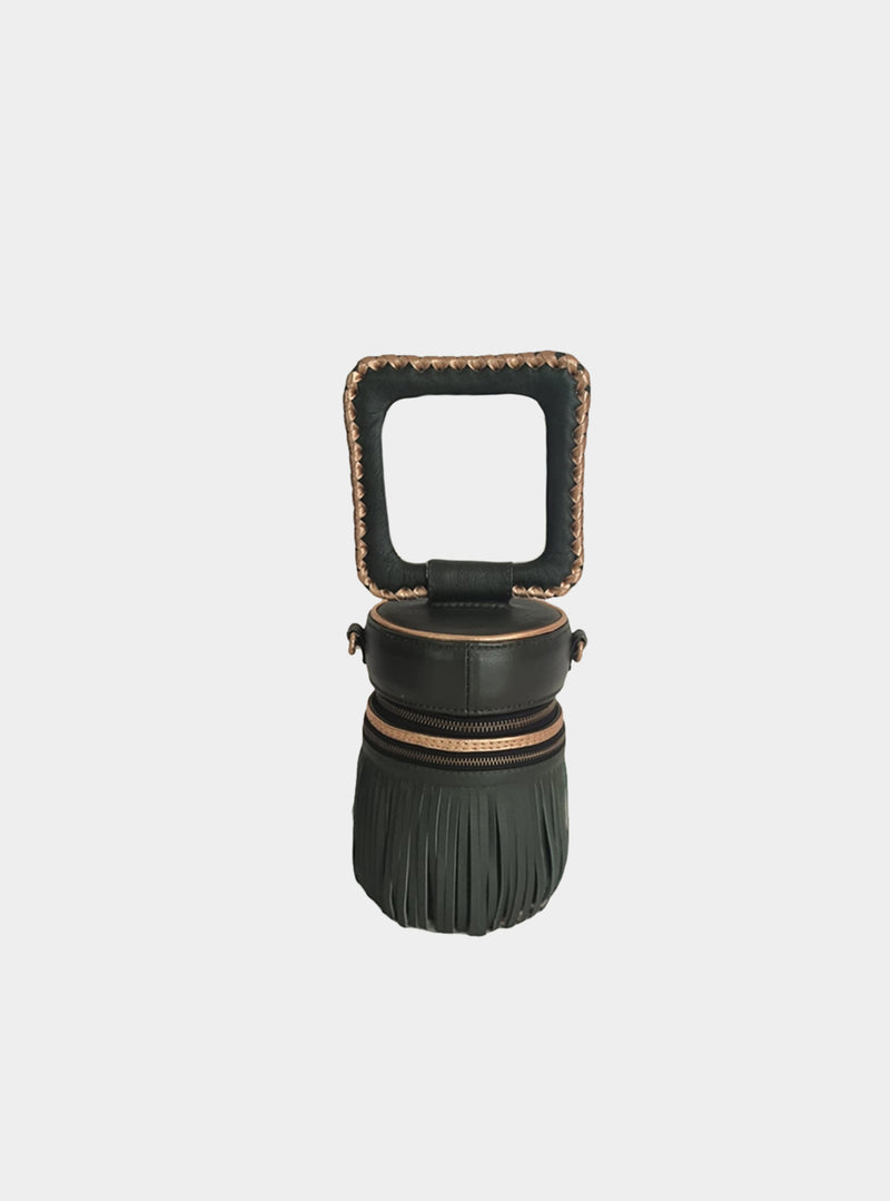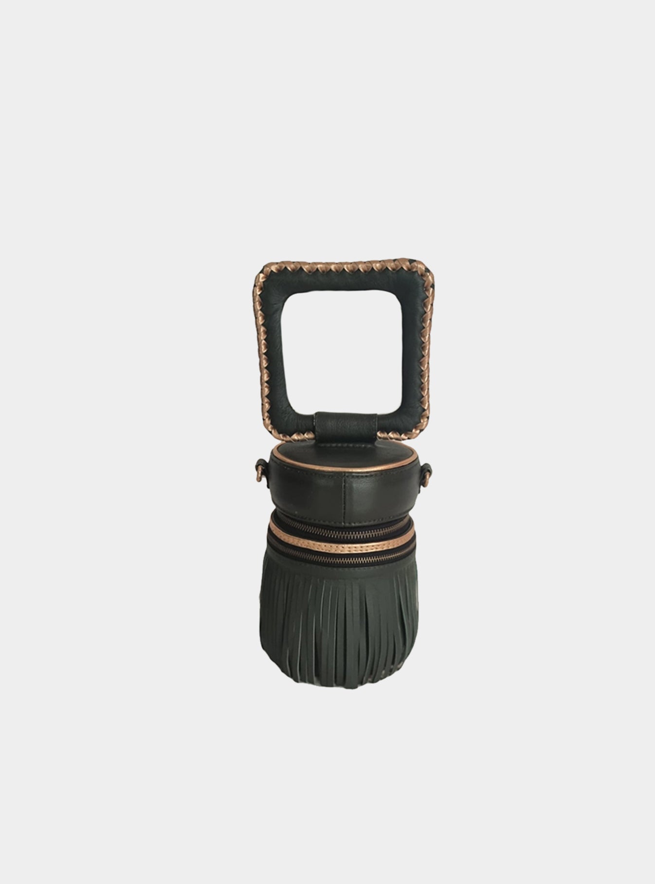 A chic fringe detailing, exudes femininity and sophistication. Not only does it showcase a built-in mirror, perfect for on-the-go touch-ups, but it also offers practicality with a detachable rectangular handle, allowing seamless transitions from crossbody to handheld wear. Nestled within its confines lies a petite purse, providing added convenience for the modern woman on the move.